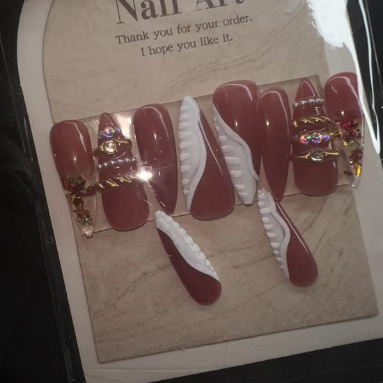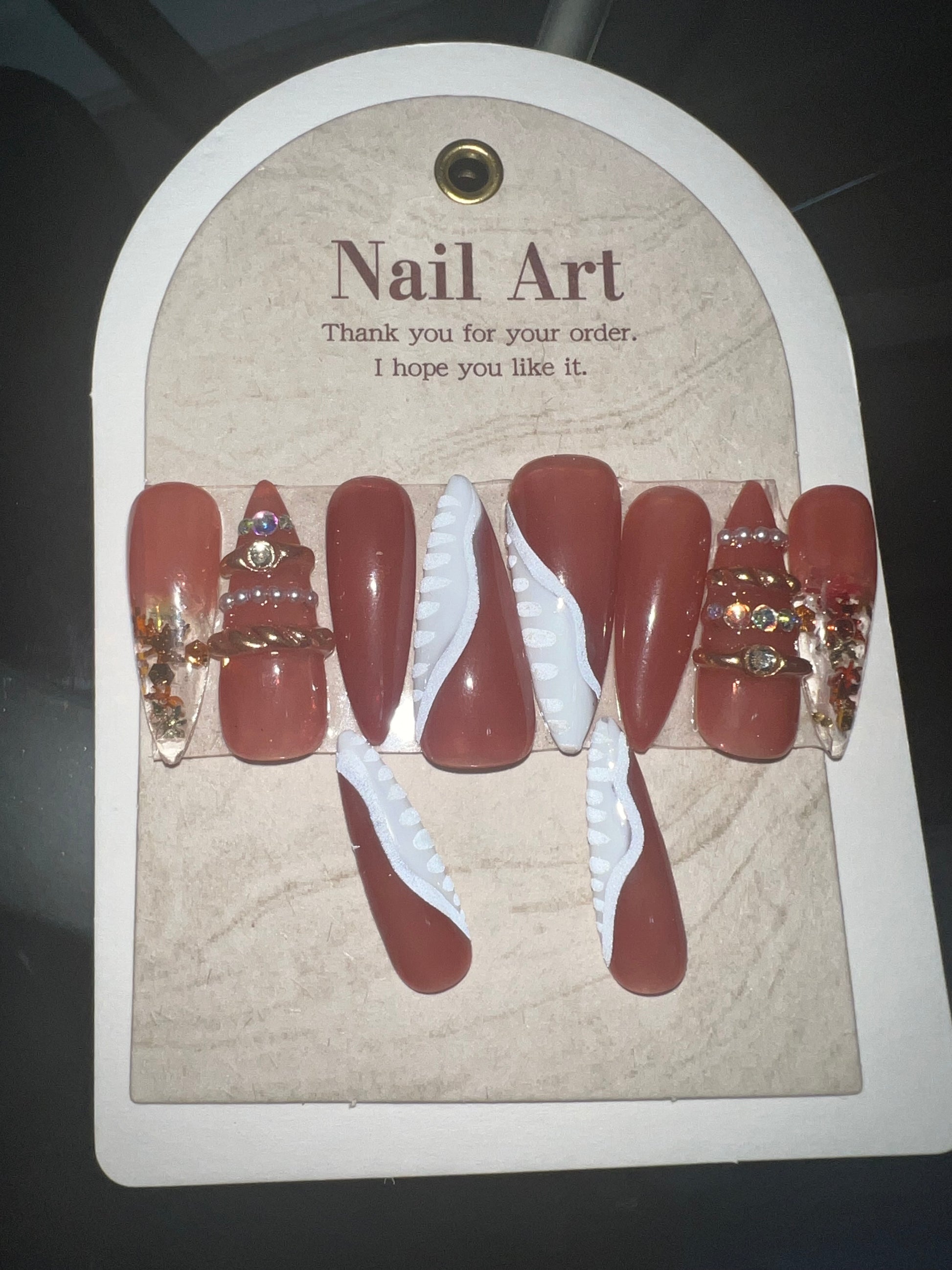 A rich cinnamon-red holiday set with creamy white sweater accents and sparkling gemstone bangles. Spiced Cinnamon Chic delivers cozy Christmas vibes with a glam twist, combining texture, shine, and bold winter color.